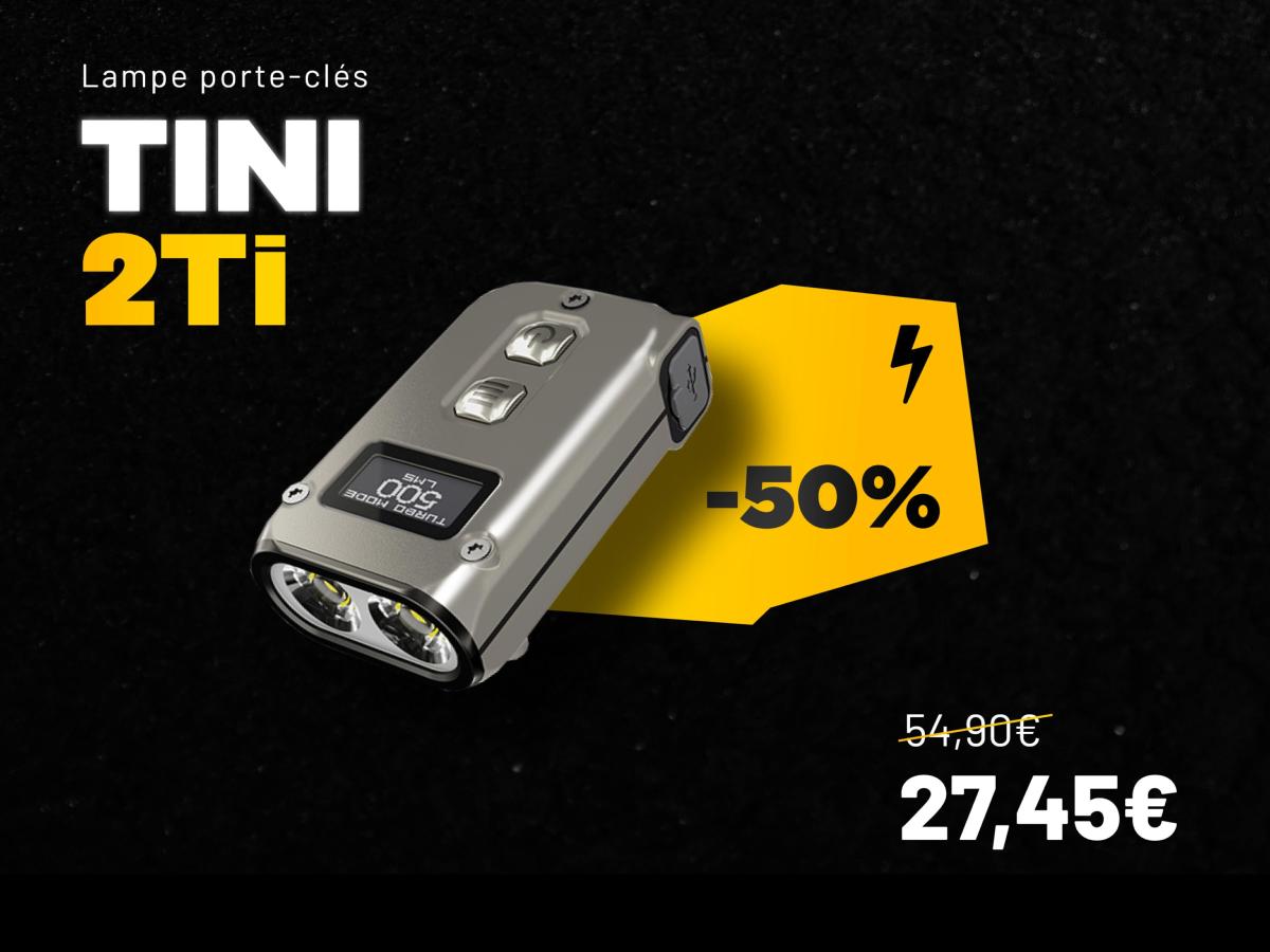 Batterie Li-ion 1700mAh intégrée Dragonne Clip Câble USB-C ![]() EN SAVOIR + La toute nouvelle Nitecore Tini 2 Ti possède un corps en alliage de titane très résistant. Connu comme l'un des "métaux modernes" et des "métaux stratégiques" présentant une grande solidité, une faible densité et une forte résistance à la corrosion. Avec un rapport puissance/compacité exceptionnel, la Tini 2 Ti est aussi très résistante. En témoigne l'anneau de traction à la base de la lampe, pouvant supporter un poids de 30kg.